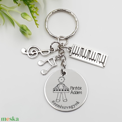 Zenésznek ajándék - zenész kulcstartó grafikával, egyedi névvel, felirattal