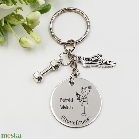 Sportolónőnek ajándék - sportolónő kulcstartó grafikával, egyedi névvel, felirattal