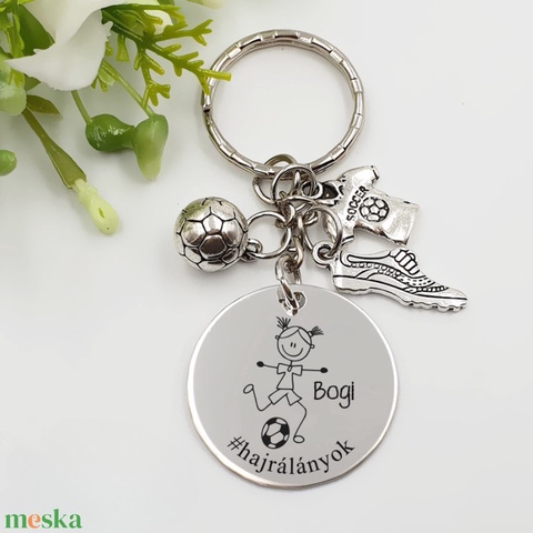 Focista nőnek ajándék - focista kulcstartó grafikával, egyedi névvel, felirattal
