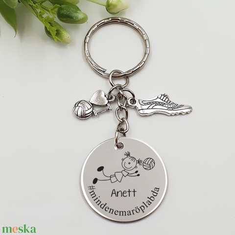Röplabdásnak ajándék - női röplabdás kulcstartó grafikával, egyedi névvel, felirattal