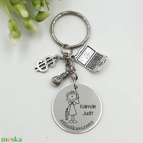 Főnöknőnek ajándék - főnöknő kulcstartó grafikával, egyedi névvel, felirattal