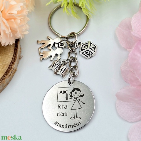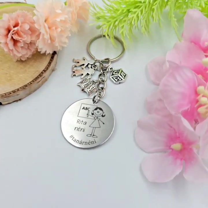 Tanárnőnek ajándék - tanárnő kulcstartó grafikával, egyedi névvel, felirattal