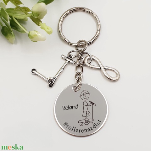 Rolleresnek ajándék - rolleres kulcstartó grafikával, egyedi névvel, felirattal