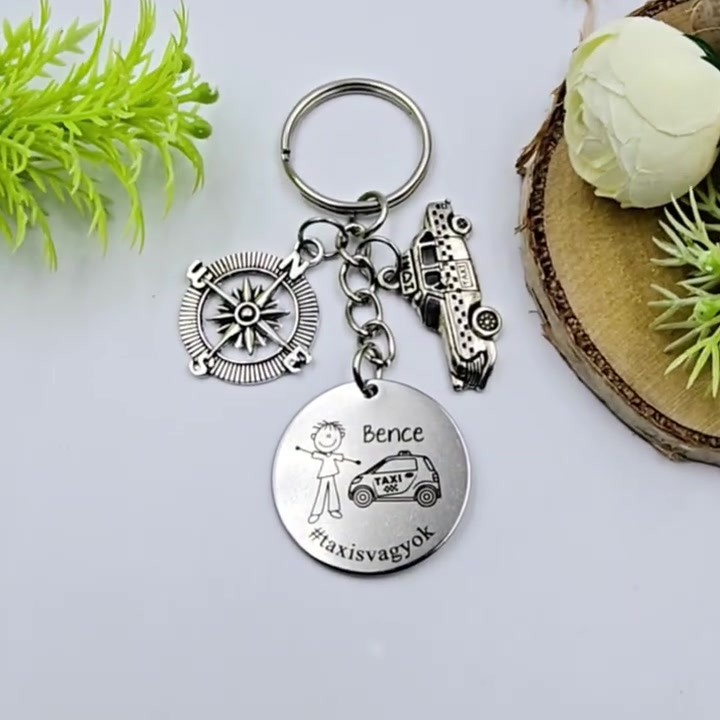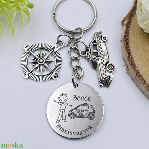 Taxisnak ajándék - taxis kulcstartó grafikával, egyedi névvel, felirattal