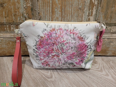 Pasztell virágos neszesszer, valódi bőr pánttal, Pedagógus napra, évzáróra, ballagásra, diplomára.