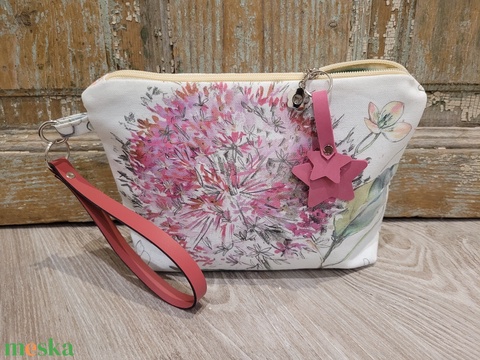 Pasztell virágos neszesszer, valódi bőr pánttal, Pedagógus napra, évzáróra, ballagásra, diplomára.