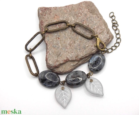 - Anyag/Összetevő larvikite ásványgyöngy, antik bronz ovális elemek, szerelék, cseh formagyöngy