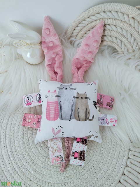 - Anyag/Összetevő pamutvászon, mintás ripsz szalag, műanyag csörgő