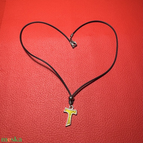 Antoniusz kereszt, Tau kereszt tűzzománcból kereszt nyakláncra – vintage vallásos ékszer az 1970–80-as évekből