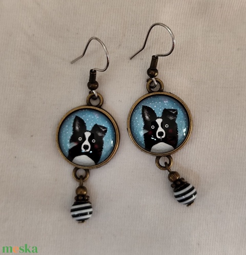 Üveglencsés fülbevaló kutyás képpel