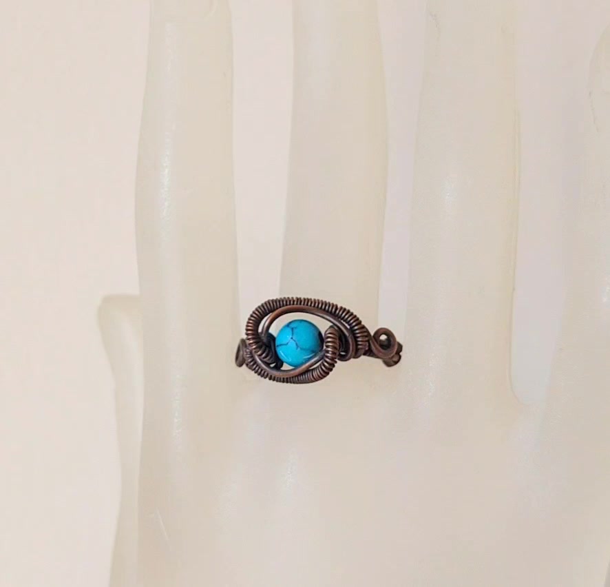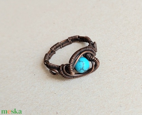 Vörösréz drót gyűrű türkiz ásvány kővel