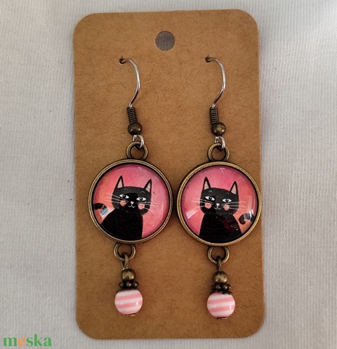 Üveglencsés fülbevaló cicás képpel