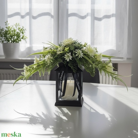LED-es lámpás kegyeleti dísz fehér virággal