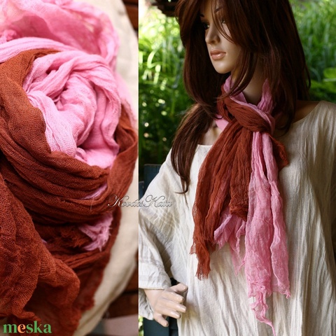 TWEENS / ciklámen-rozsda - batikolt géz sál kettős