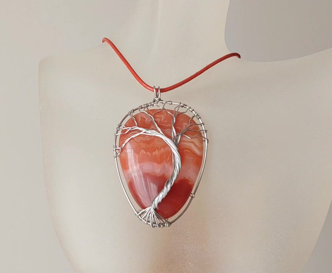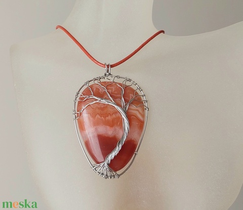 Karneol achát acél életfa nyaklánc