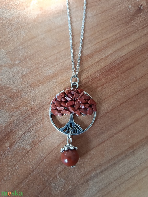 Életfa medál barna homokkő ásvánnyal orvosi acél lánccal
