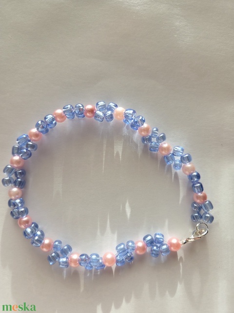Gyöngyből készült rózsaszín-kék karkötő