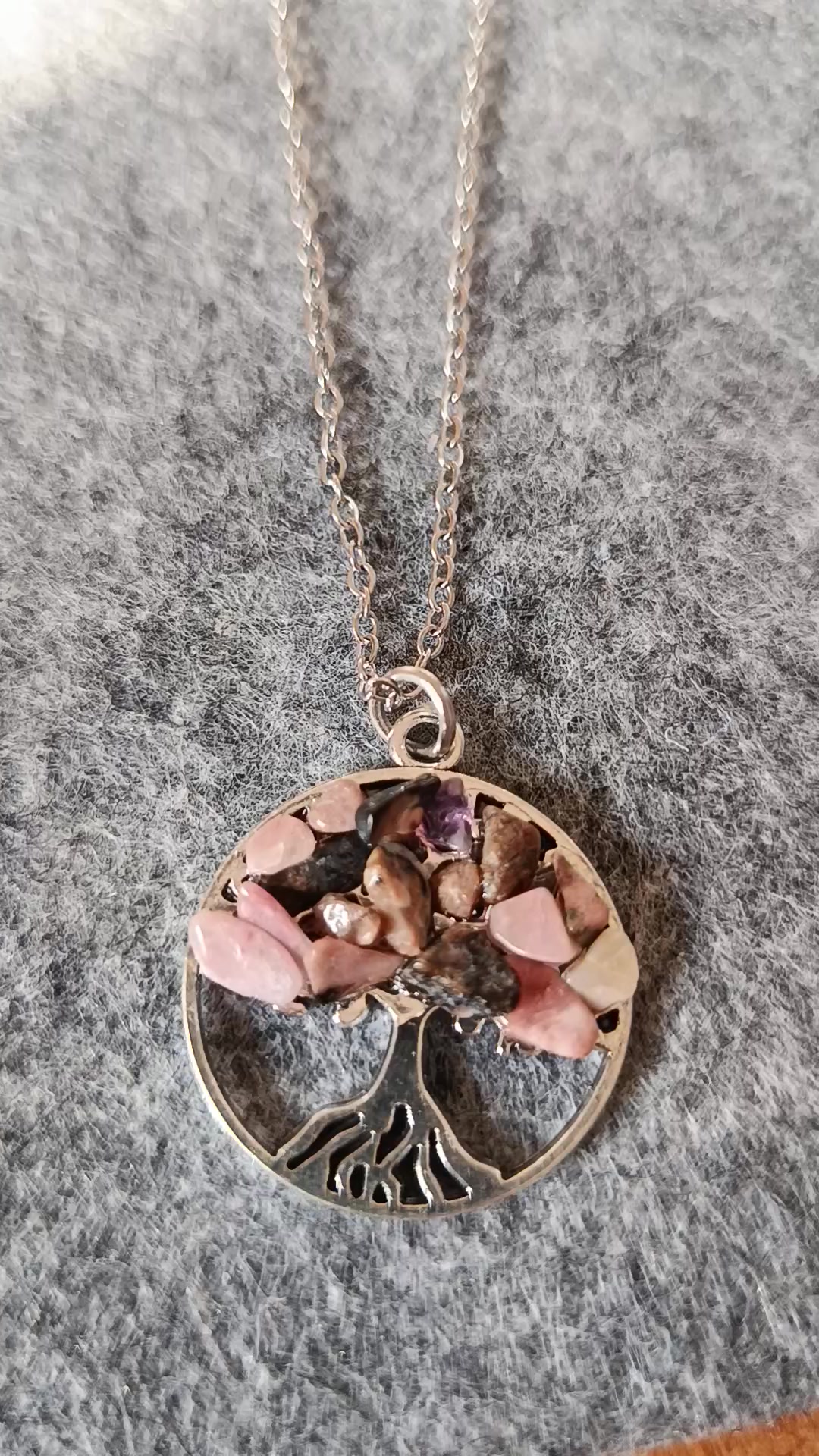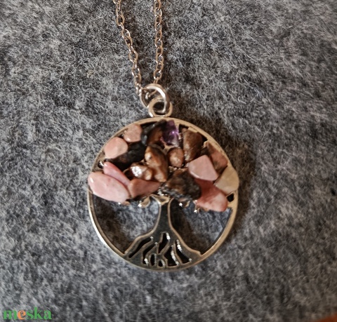 Életfa medál rodonit ásvánnyal orvosi acél lánccal