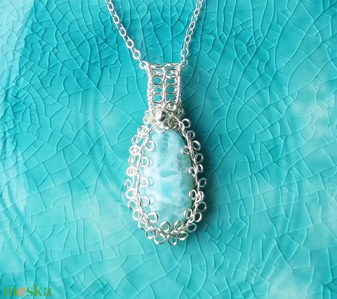 Larimár természetes ásvány medál rézzel