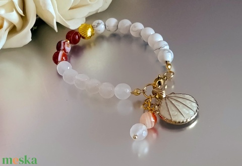 Nyári harmónia - vitalitás - nyugalom – achát és howlit karkötő kagyló medállal