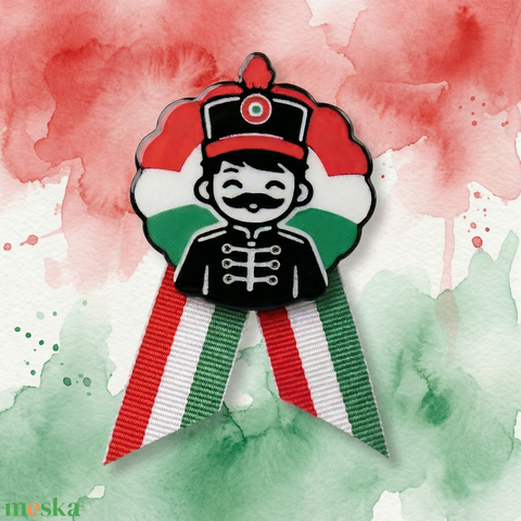 Kokárda - Magyar huszár népviseletben - Kitűző nemzeti színű szalaggal