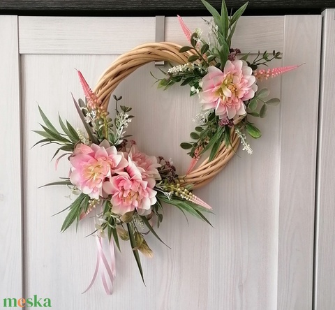 - Anyag/Összetevő selyemvirág, fonott koszorú