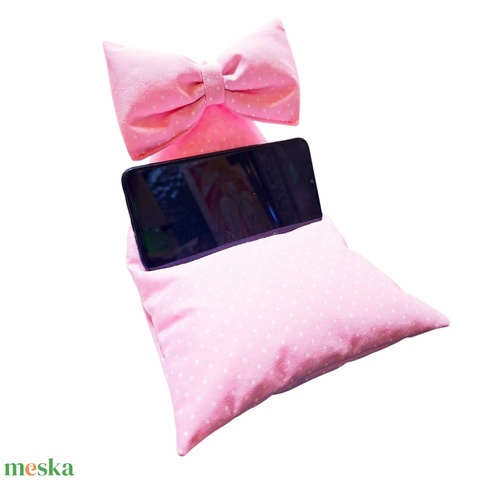 Nyuszifüles mini babzsák mobiltartó halvány rózsaszín pöttyös, masnival