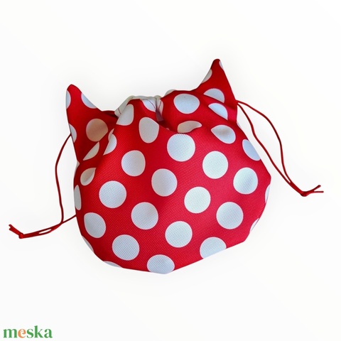 Cicafüles összehúzható zsákocska neszeszer, piros pöttyös