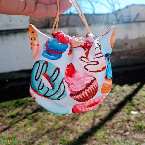 Cicafüles összehúzható zsákocska neszeszer, fánkos, muffinos