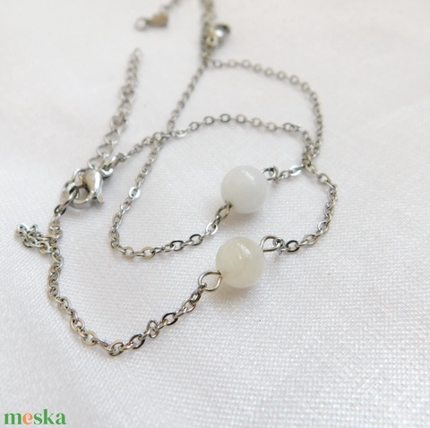 Mérete: gyöngy 0,6 cm , lánc 15,5+4,5 cm / 15,7+5 cm