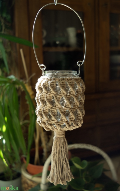 Makramé lámpás-mécsestartó