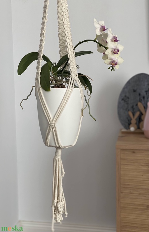 Virágtartó, makramé, krémszínű