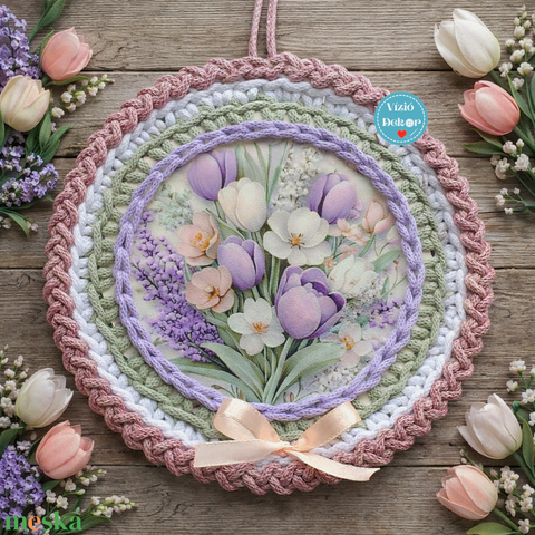 Horgolt virágos , tulipános tábladísz