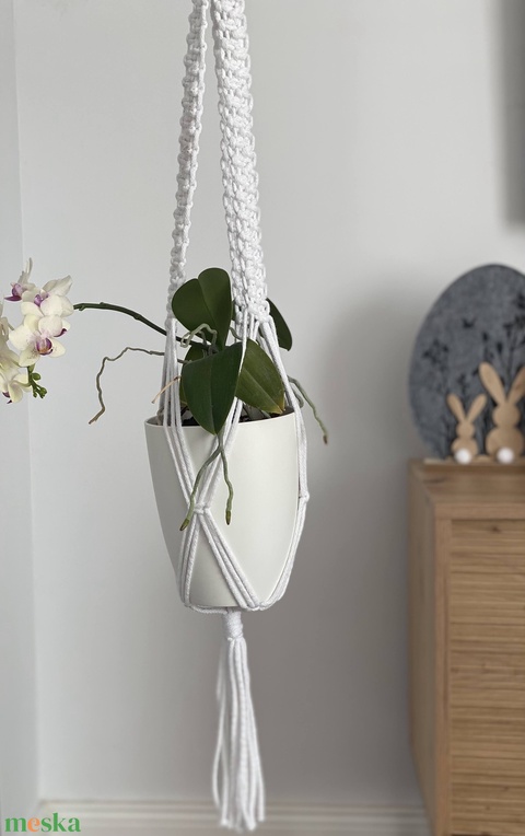 Virágtartó, makramé, fehér színű