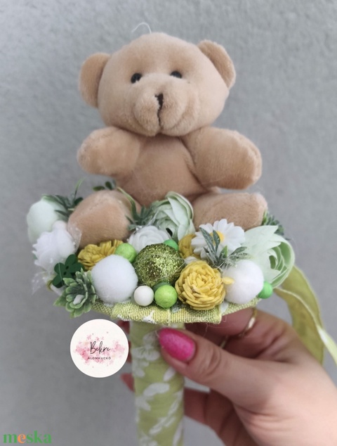Ballagási örökcsokor - zöld macis