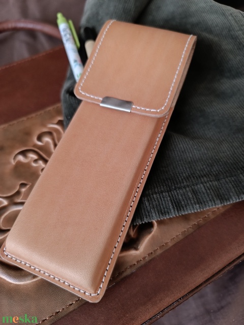 Világosbarna bőr tolltartó