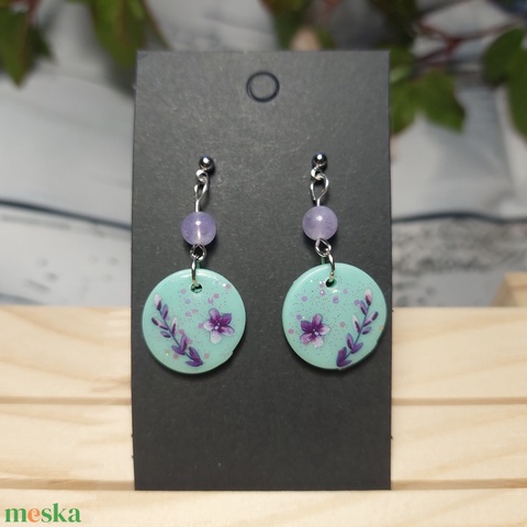 Virágos gyurma medálos fülbevaló ásvány gyönggyel