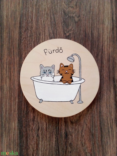 Ajtótábla, ajtó jelölő tábla, névtábla, kopogtató, felirat- Pancsoló cicák