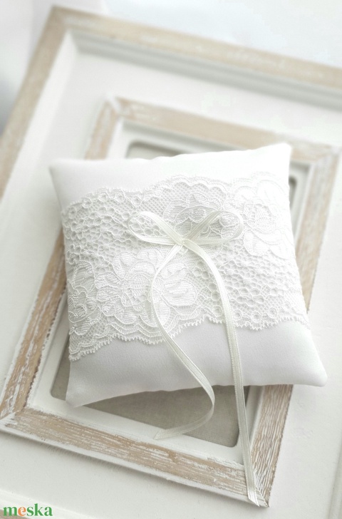 Gyűrűpárna "CELINE", csipkés szatén gyűrűpárna