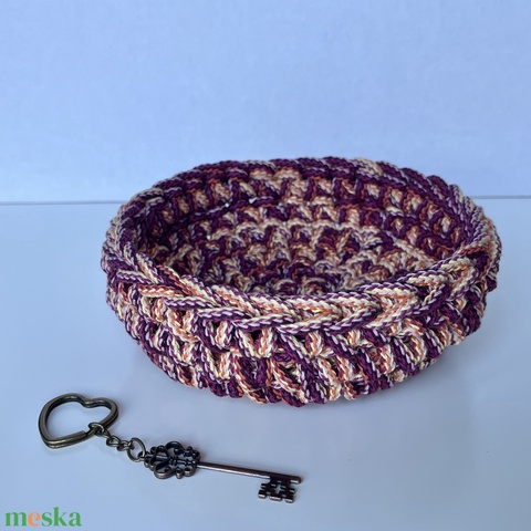 Kézzel horgolt kosár különleges színes fonalból - kulcstartó, ékszertartó, papírzsepitartó, szemüvegtartó, és reggelihez