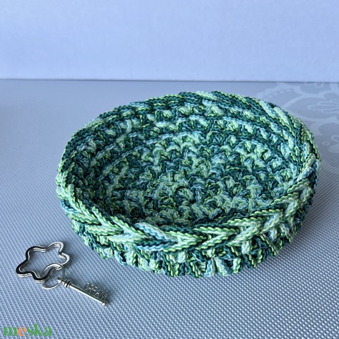 Kézzel horgolt kosár különleges színes fonalból - kulcstartó, ékszertartó, papírzsepitartó, szemüvegtartó, és reggelihez