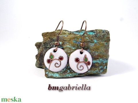 Termő ág - egyedi lógós kerek tűzzománc fülbevaló