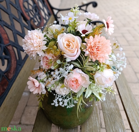 - Anyag/Összetevő selyemvirág, szaténszalag, organzaszalag, teklagyöngy dekor