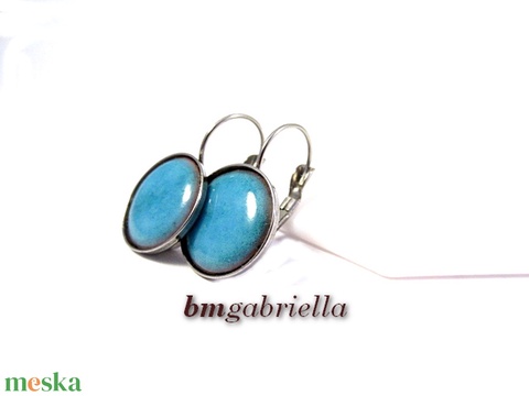 Tűzzománc fülbevaló - nemesacél, orvosi fém fülbevaló francia kapoccsal, világoskék tűzzománc betéttel