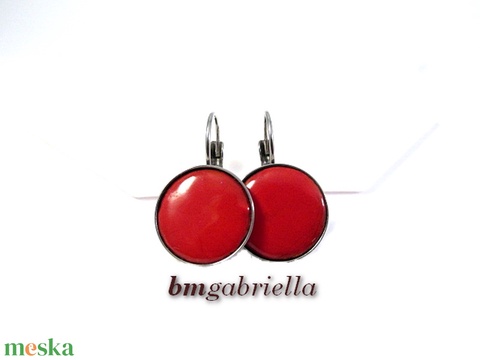Tűzzománc fülbevaló - nemesacél, orvosi fém fülbevaló francia kapoccsal, piros tűzzománc betéttel