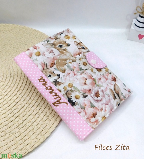 Erdei állatos őzikés egészségügyi kiskönyv borító névhímzéssel