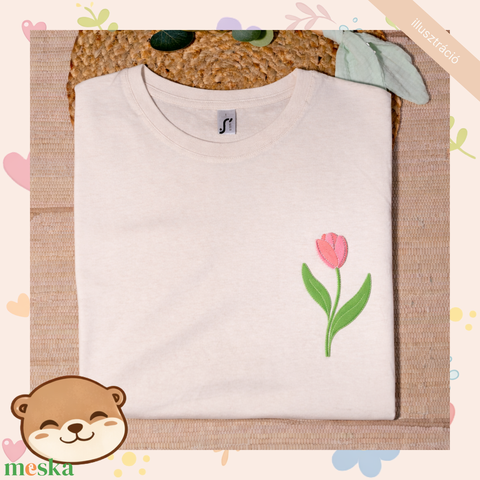 Tulipán mintás női póló, tavaszi virágos minta