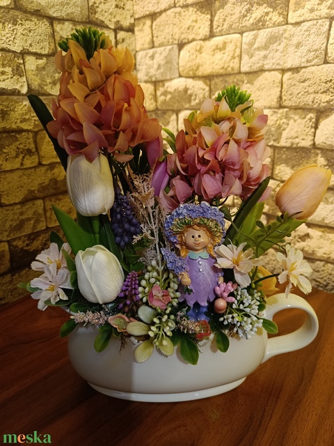 - Anyag/Összetevő kerámia, figura, moha, selyemvirág