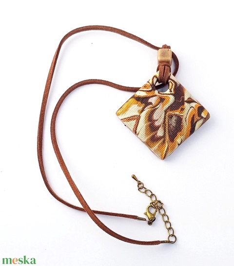 Barna-krém nyaklánc, ékszergyurma medál