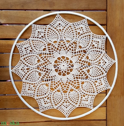 Horgolt falidísz, függődísz, ablakdísz, fali dekoráció 30 cm